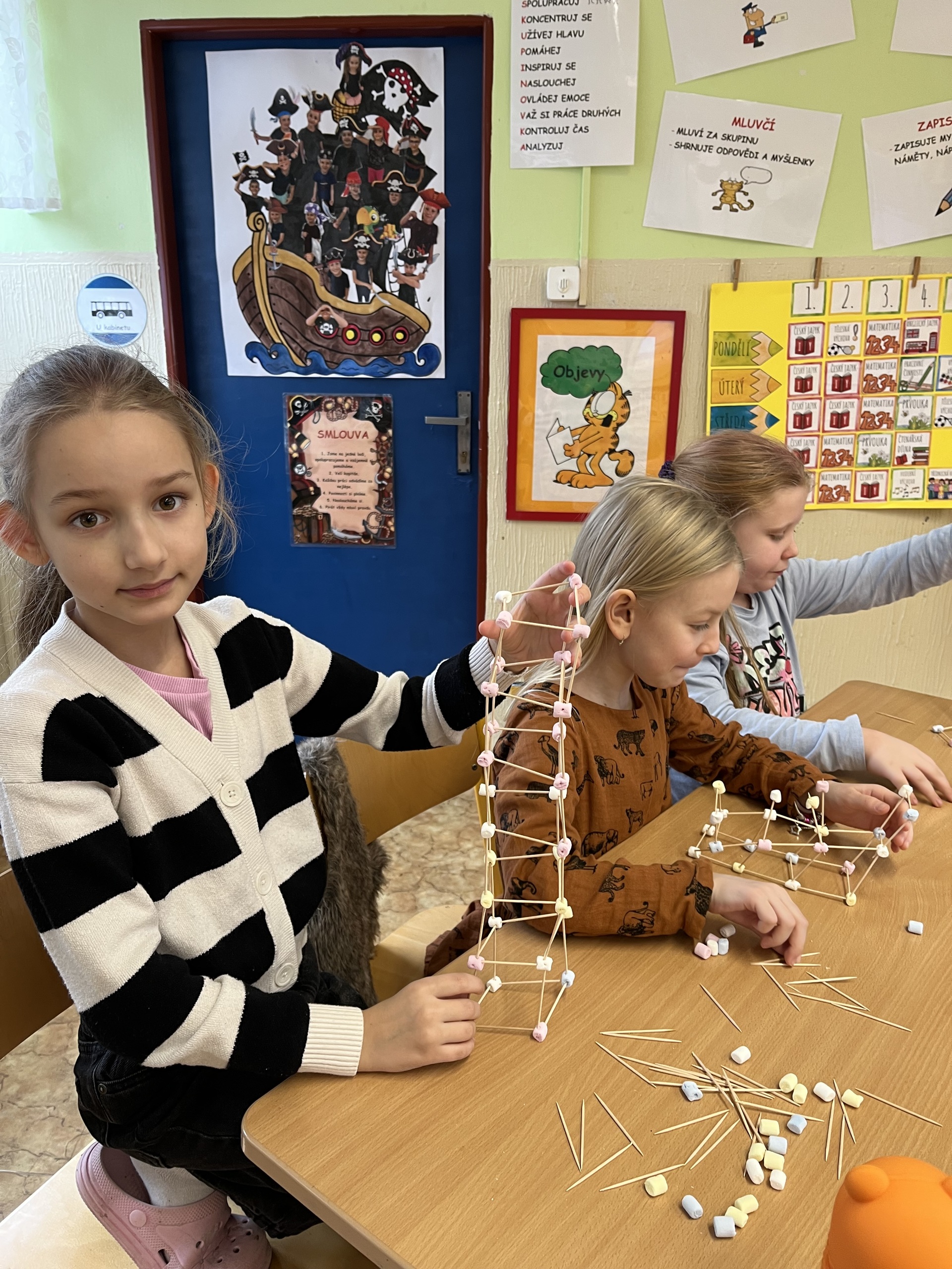 Geometrie rozhodně nemusí být nuda! O tom se přesvědčili žáci 2. A v hodině matematiky, ve které bylo jejich úkolem vytvořit nejrůznější prostorové stavby. Děti si zopakovaly pojmy bod a úsečka i názvy geometrických těles a jako sladkou odměnu si nakonec rozdělily “stavební materiál”, který během svého tvoření nespotřebovaly. Komenský by z nich měl radost. Žáci zapojili všechny smysly! ???? Monika Linhartová
