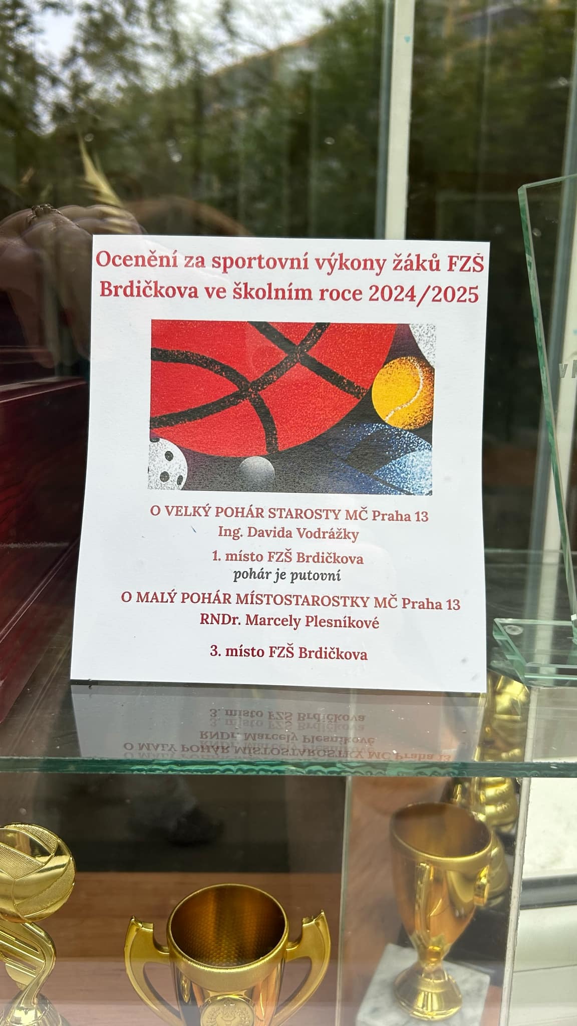 POHÁR JE NÁŠ! Naše děti z FZŠ Brdičkova doslova zazářily – a díky skvělému výkonu v jednotlivých disciplínách jsme vítězi Velkého poháru pana starosty. Pohár naši žáci převzali 23. 6. 2025 na Radnici Prahy 13. Ani žáci I. stupně nezůstali pozadu a umístili se na krásném 3,. místě. 2. stupeň zabodoval naplno – silné výkony v Poháru rozhlasu, beachvolejbalu i nohejbalu nám přinesly 1. místo v celkovém hodnocení! Týmový duch, píle a radost z pohybu = vítězná kombinace. Děkujeme všem žákům, učitelům i trenérům za úsilí a spolupráci. Slavnostní vyhlášení se uskuteční 23. června na Radnici Prahy 13. Gratulujeme všem našim sportovcům – jste jedničky!