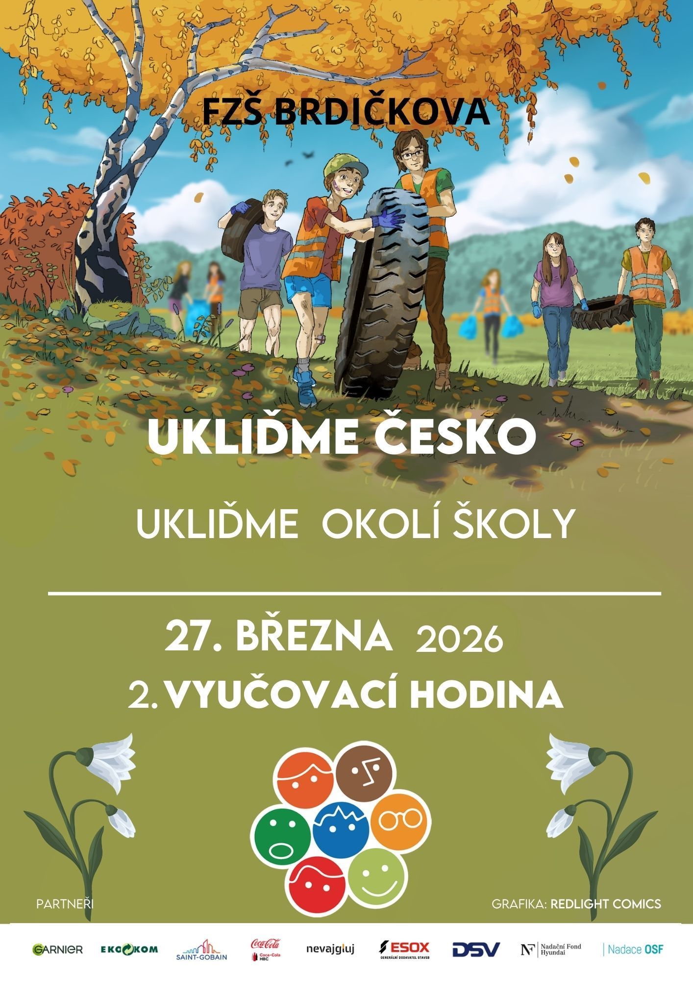 V pátek 27. 3. 2026 od 8:55 hodin se naše škola opět zapojí do úklidové akce Ukliďme Česko. Pokud máte čas a chuť, pomozte svým dětem s úklidem okolí školy. Děkujeme za pomoc a za podporu. kolektiv učitelů FZŠ Brdičkova